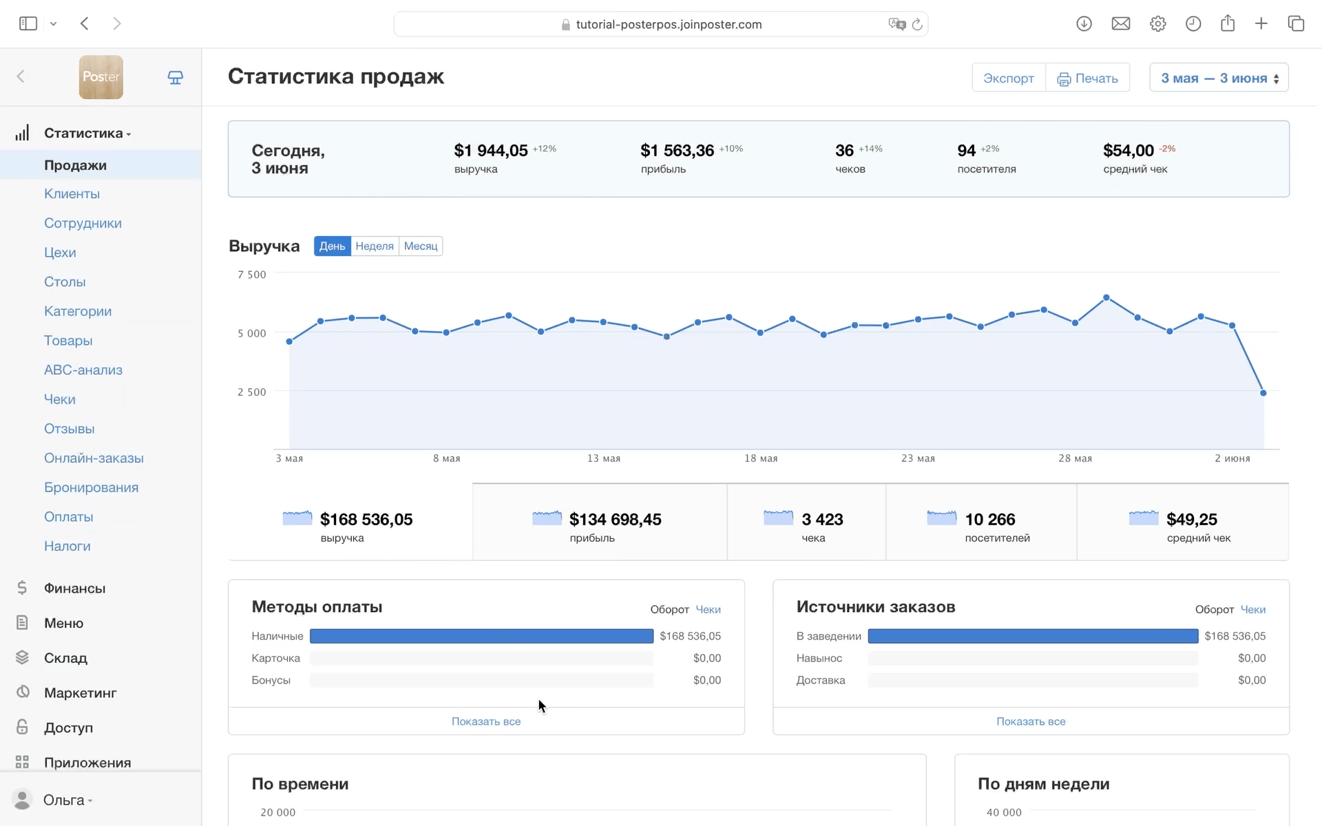Наполните меню в Poster товарами и тех. картами, которые будут отображаться на кассе официанта.