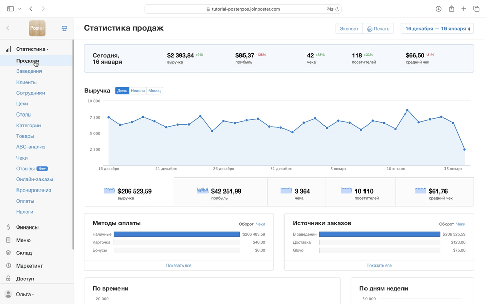 В течение дня гости рассчитывались наличными и картой. Наличная выручка за день $3 751, безналичная — $678.