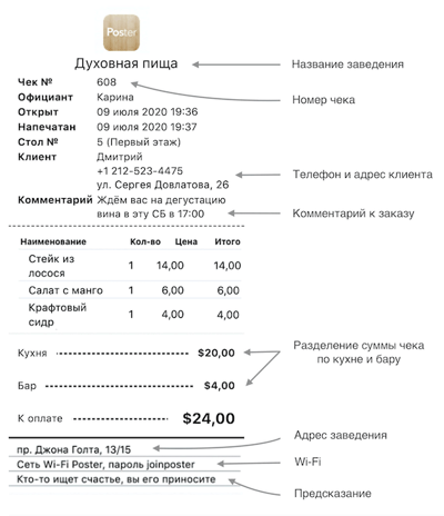 Чтобы сделать нефискальный чек вашего заведения узнаваемым и добавить в него полезную информацию для покупателей, настройте шаблон чека.