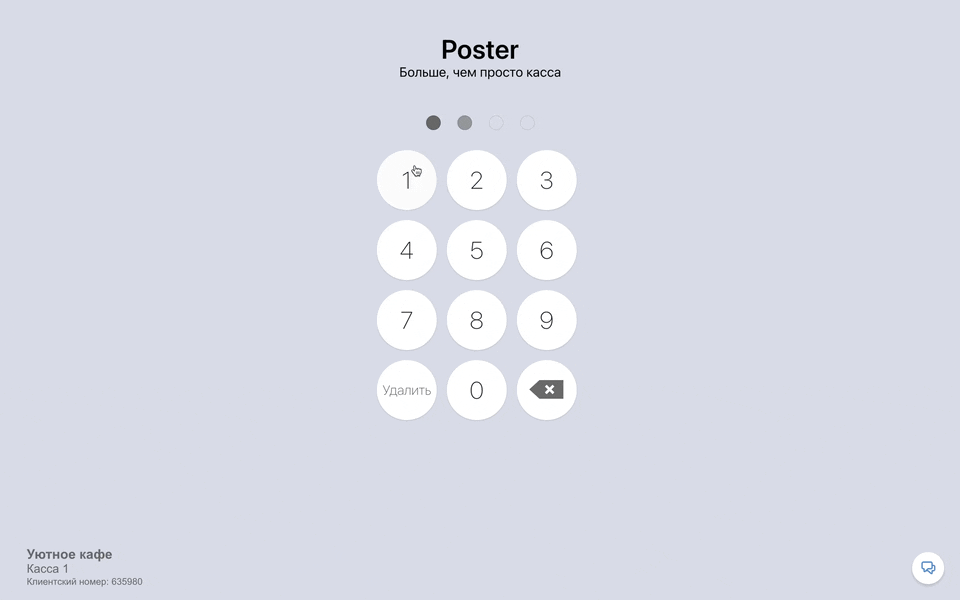 1. Откройте приложение Poster и введите ПИН-код сотрудника.