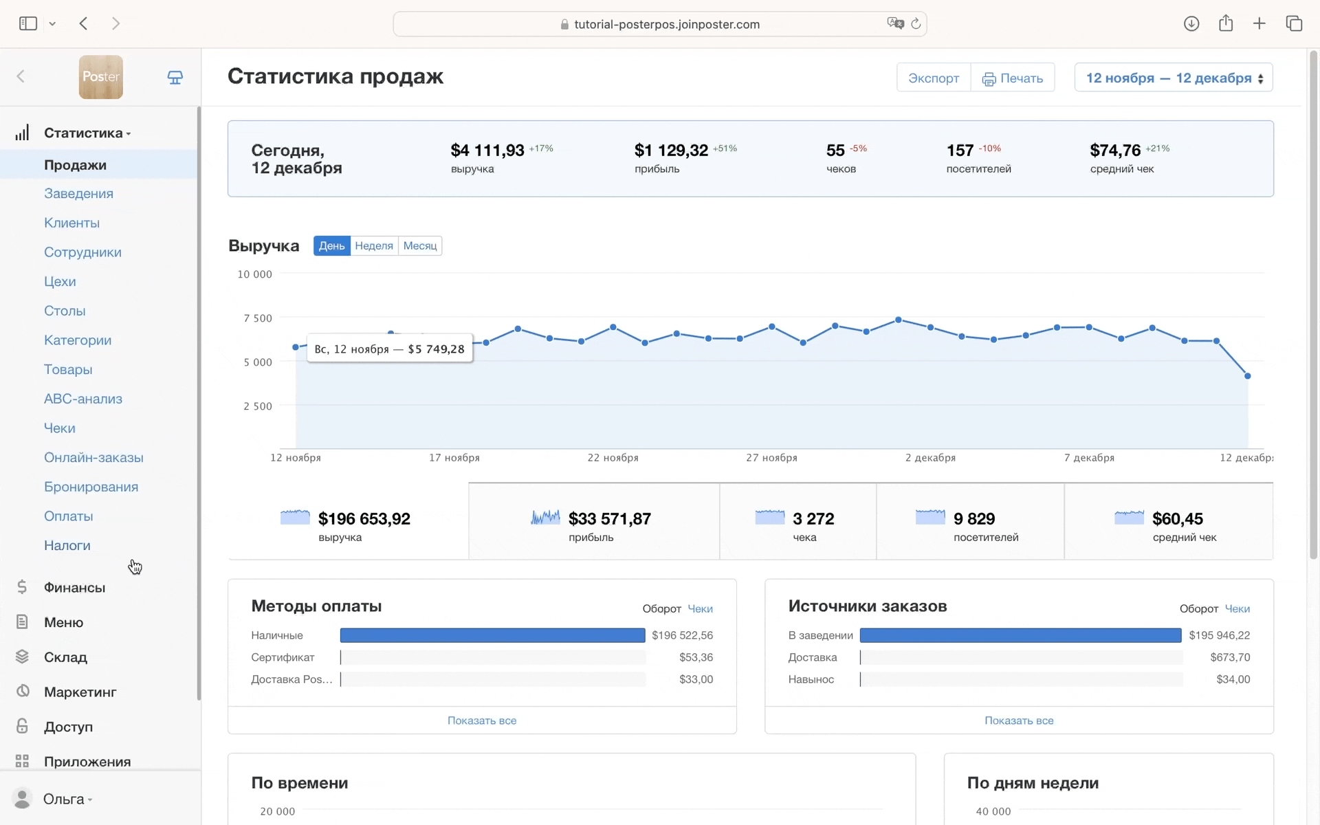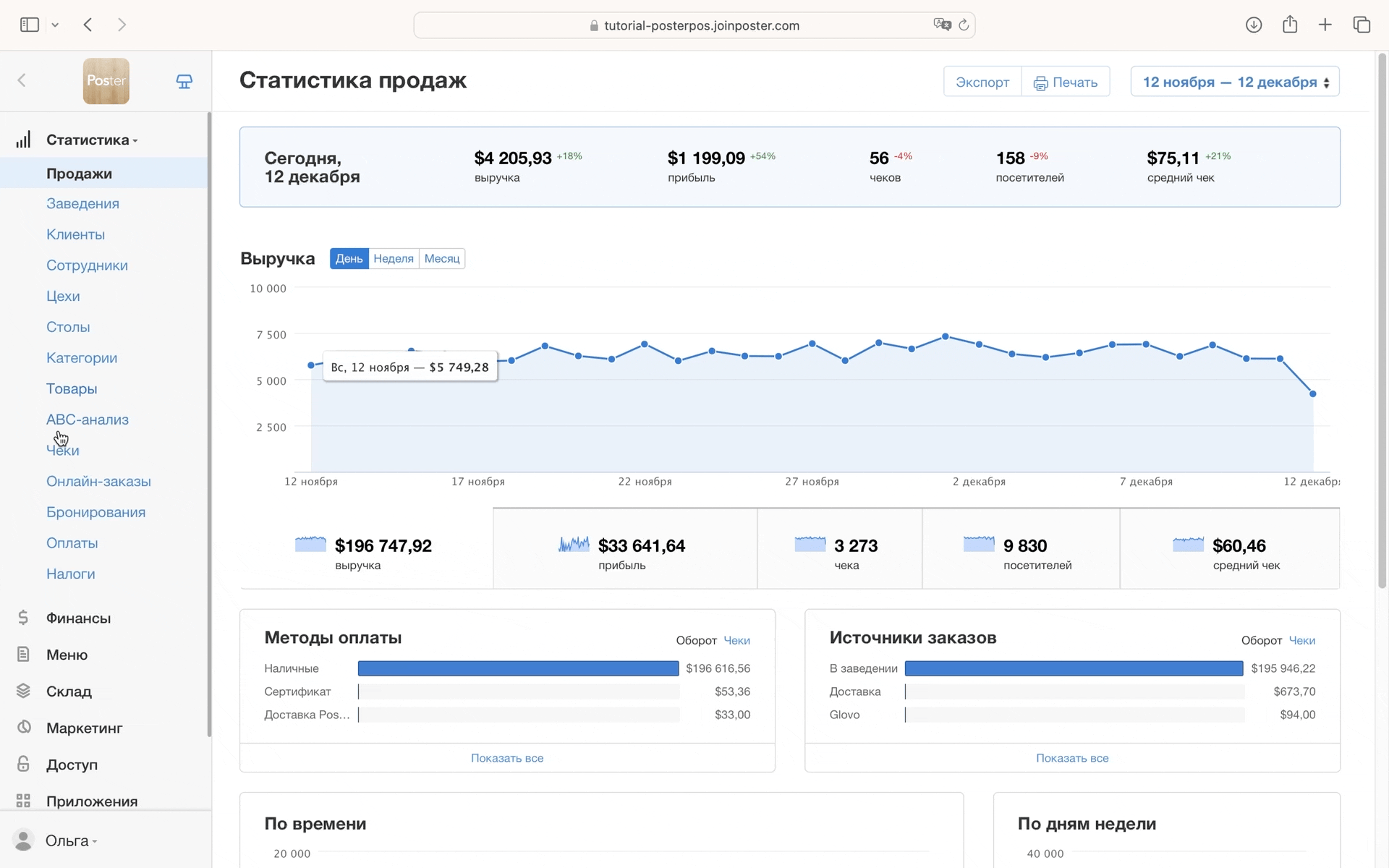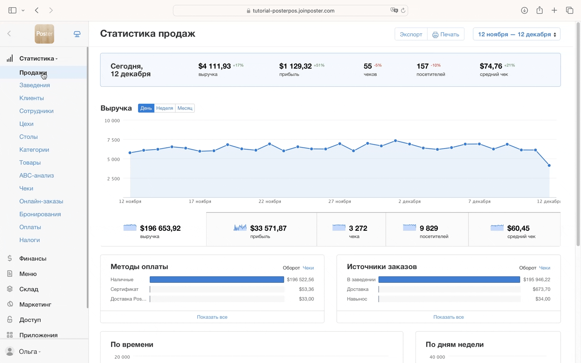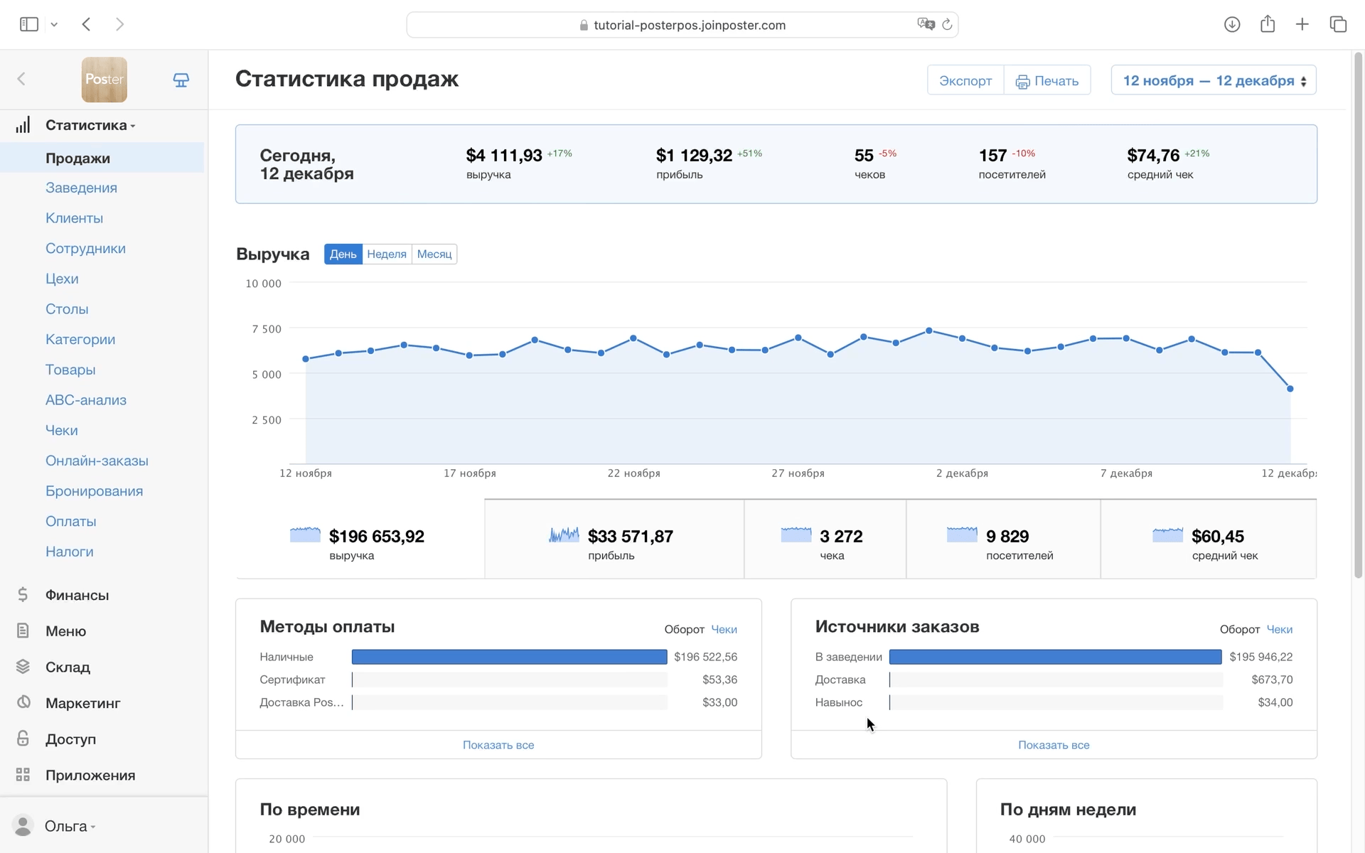 Чтобы просматривать статистику продаж по платежным системам и сервисам доставки, добавьте дополнительные методы оплаты заказа.