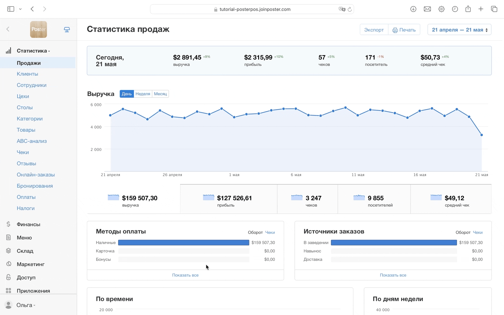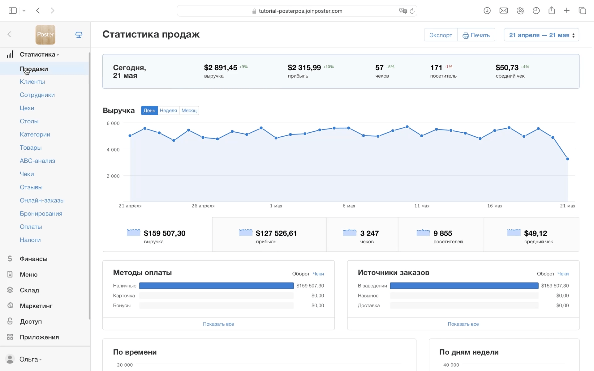 👨🏻🍳 Рассмотрим пример, как должна выглядеть работа с кассой для учета рабочего дня повара: