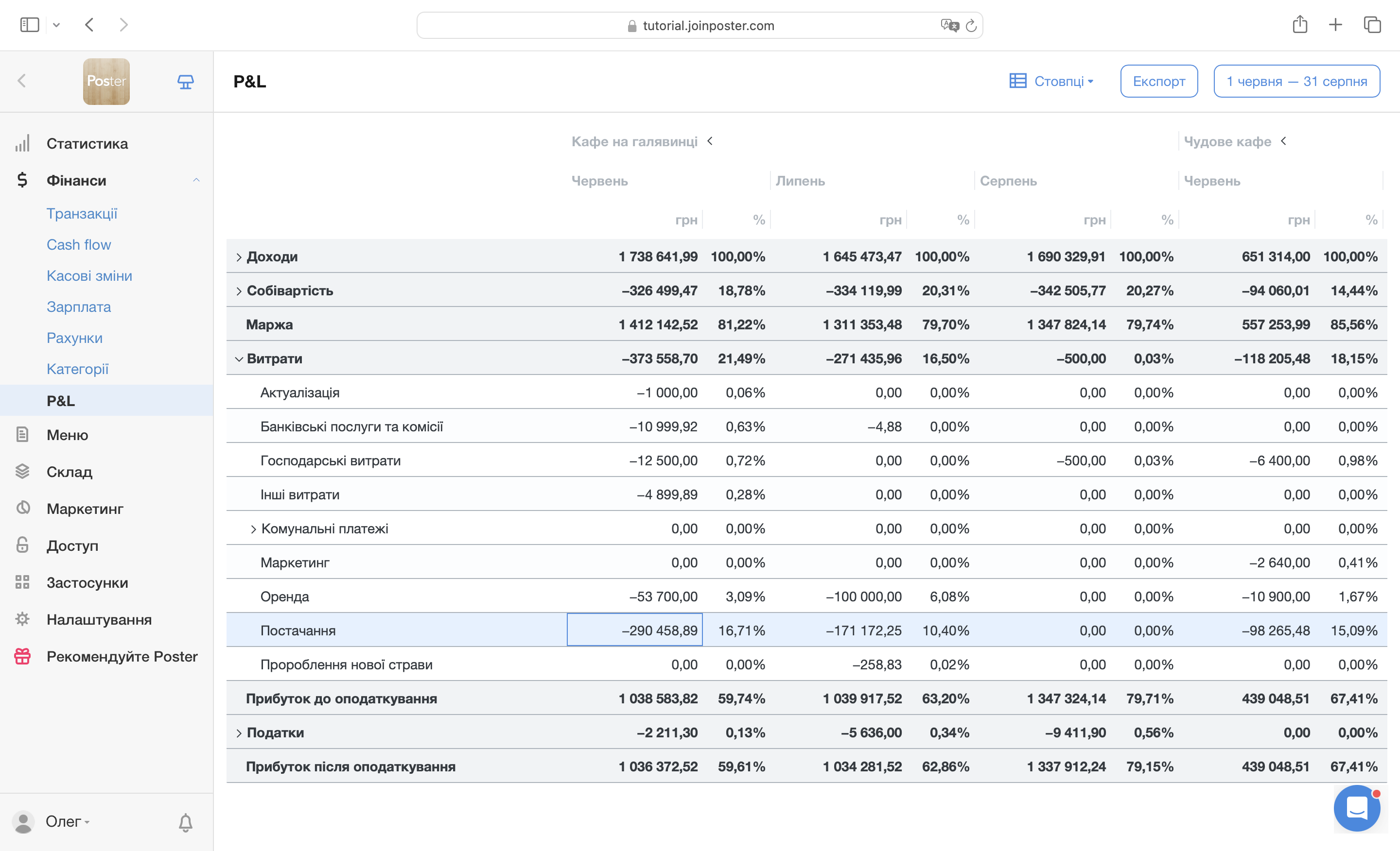 Наприклад, якщо кафе провело банкет на 10 000 грн, дохід з’явиться в P&L одразу, хоча клієнт може заплатити пізніше.