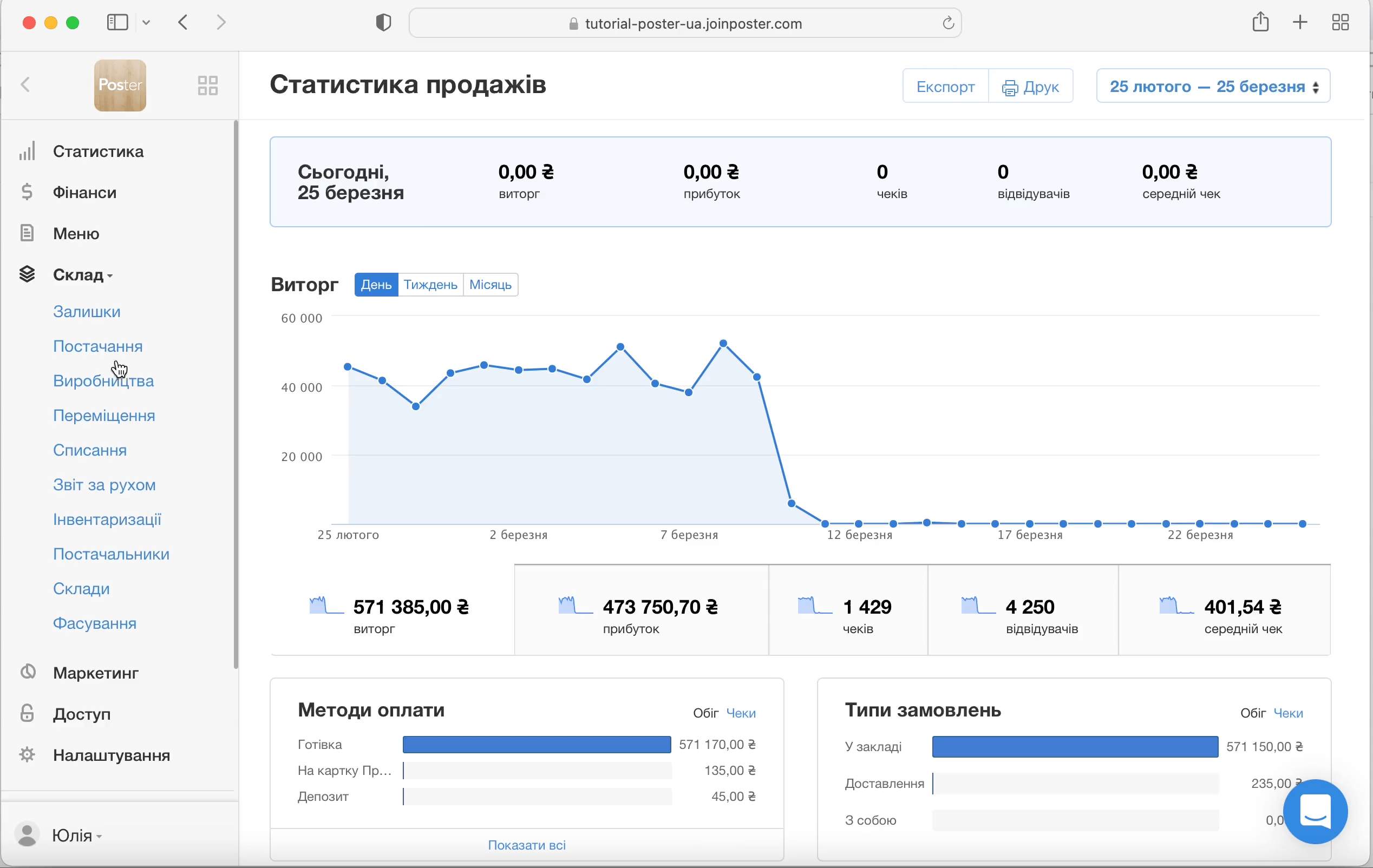 Звіт за рухом — найзручніший варіант переглянути надходження та витрати окремого продукту за будь-який період, навіть за весь час використання Poster.