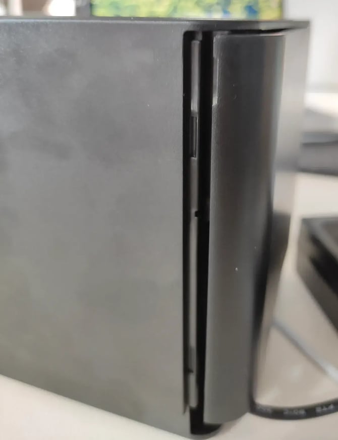 Відкрийте відсік для кабелів. Зніміть захисну кришку на задній частині принтера — підчепіть її пальцем або пласким предметом.