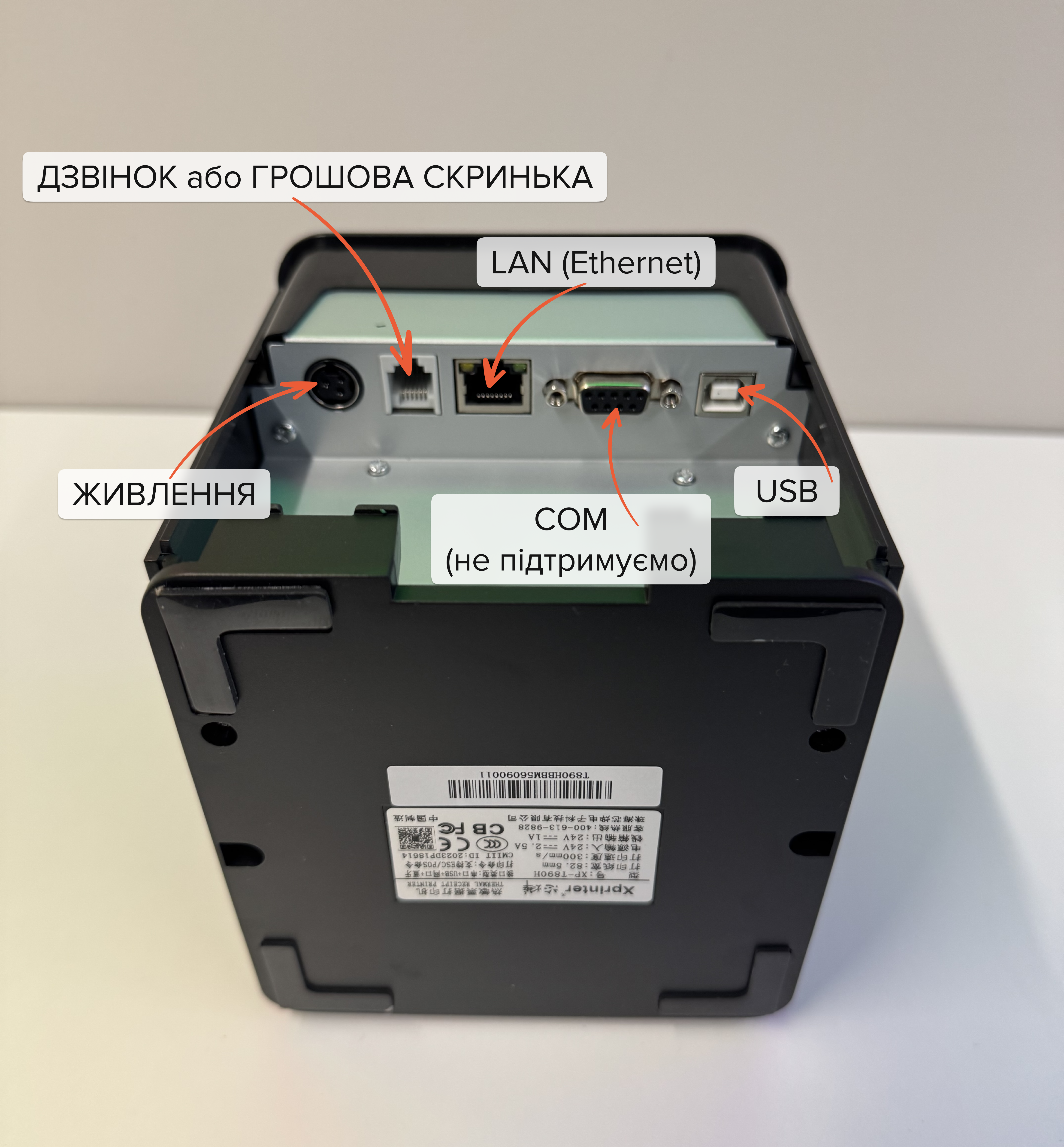 Як встановити папір та підключити кабелі до принтера Xprinter XP-T890H