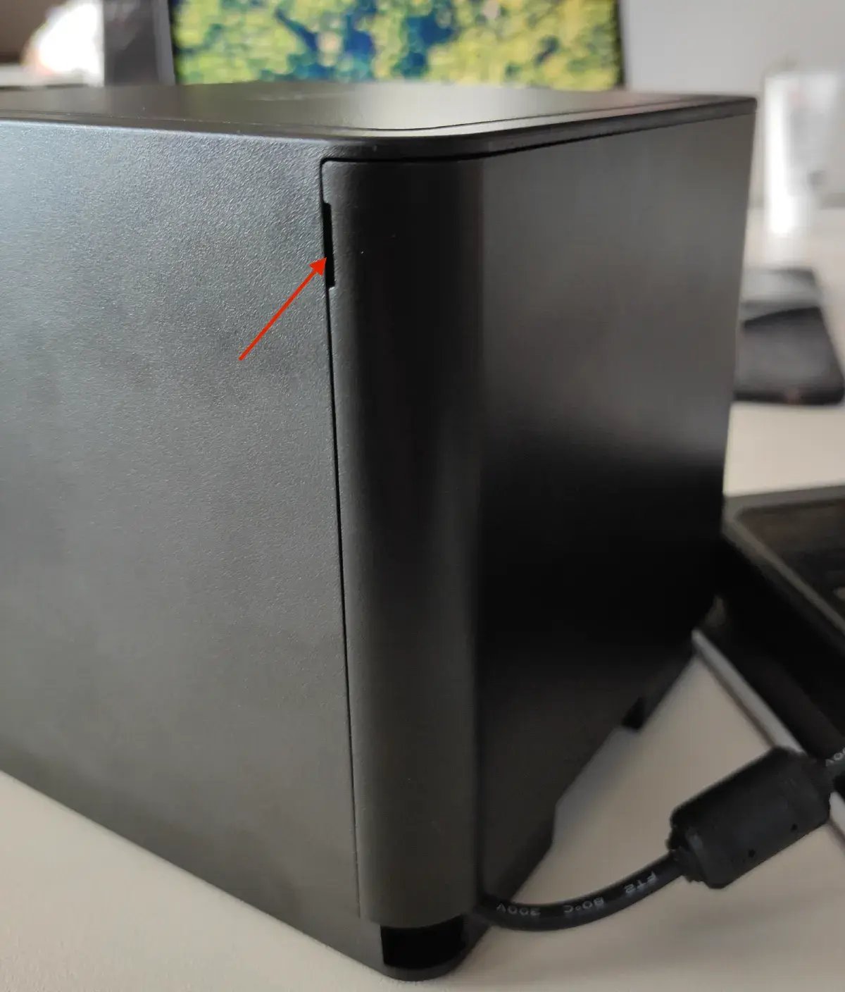 Відкрийте відсік для кабелів. Зніміть захисну кришку на задній частині принтера — підчепіть її пальцем або пласким предметом.