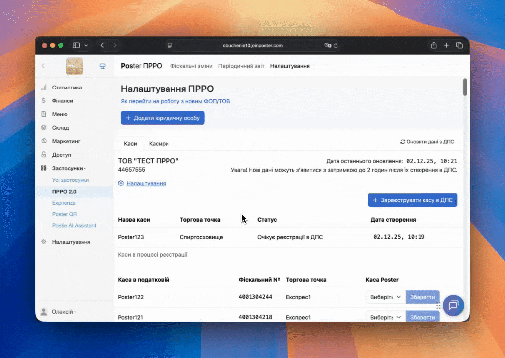 Як зареєструвати фіскальну касу в адмін-панелі ПРРО 2.0