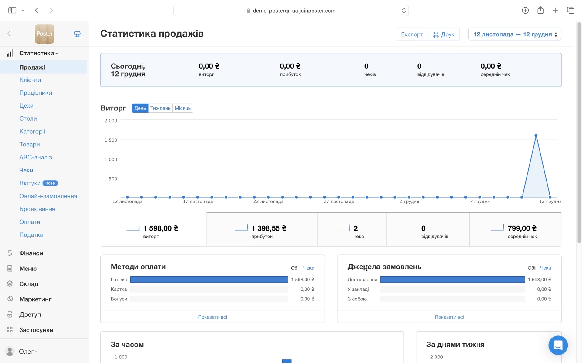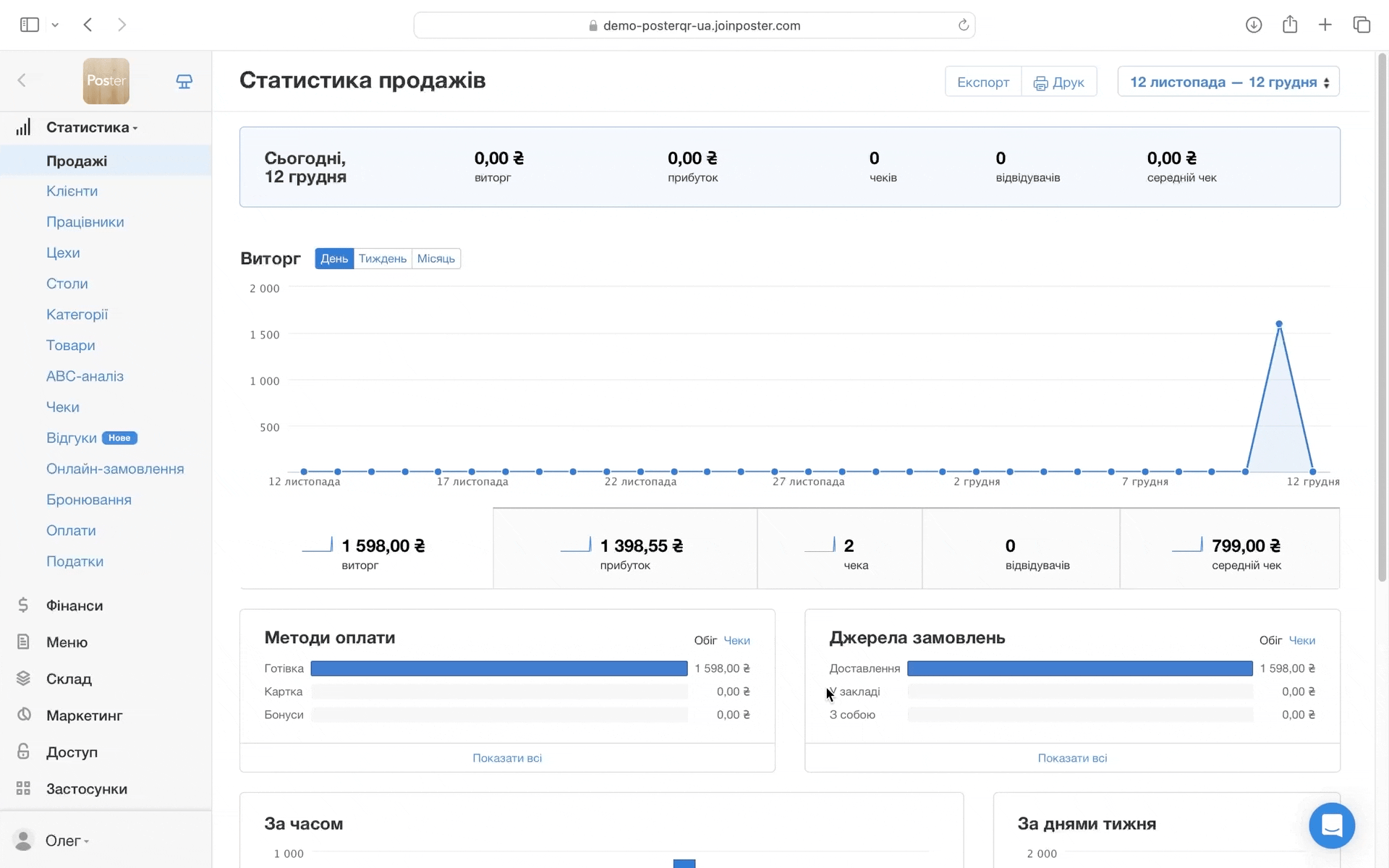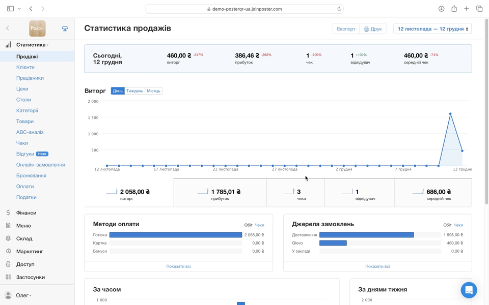 Щоб переглядати статистику продажу платіжних систем та сервісів доставлення, додайте додаткові методи оплати замовлення.