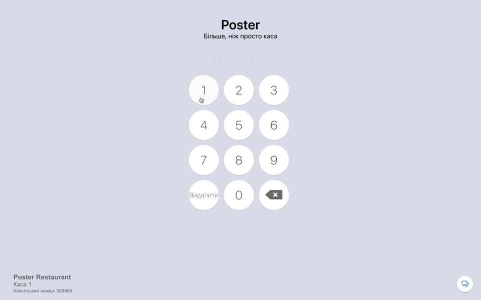 1. Перейдіть до застосунку Poster та введіть ПІН-код працівника.