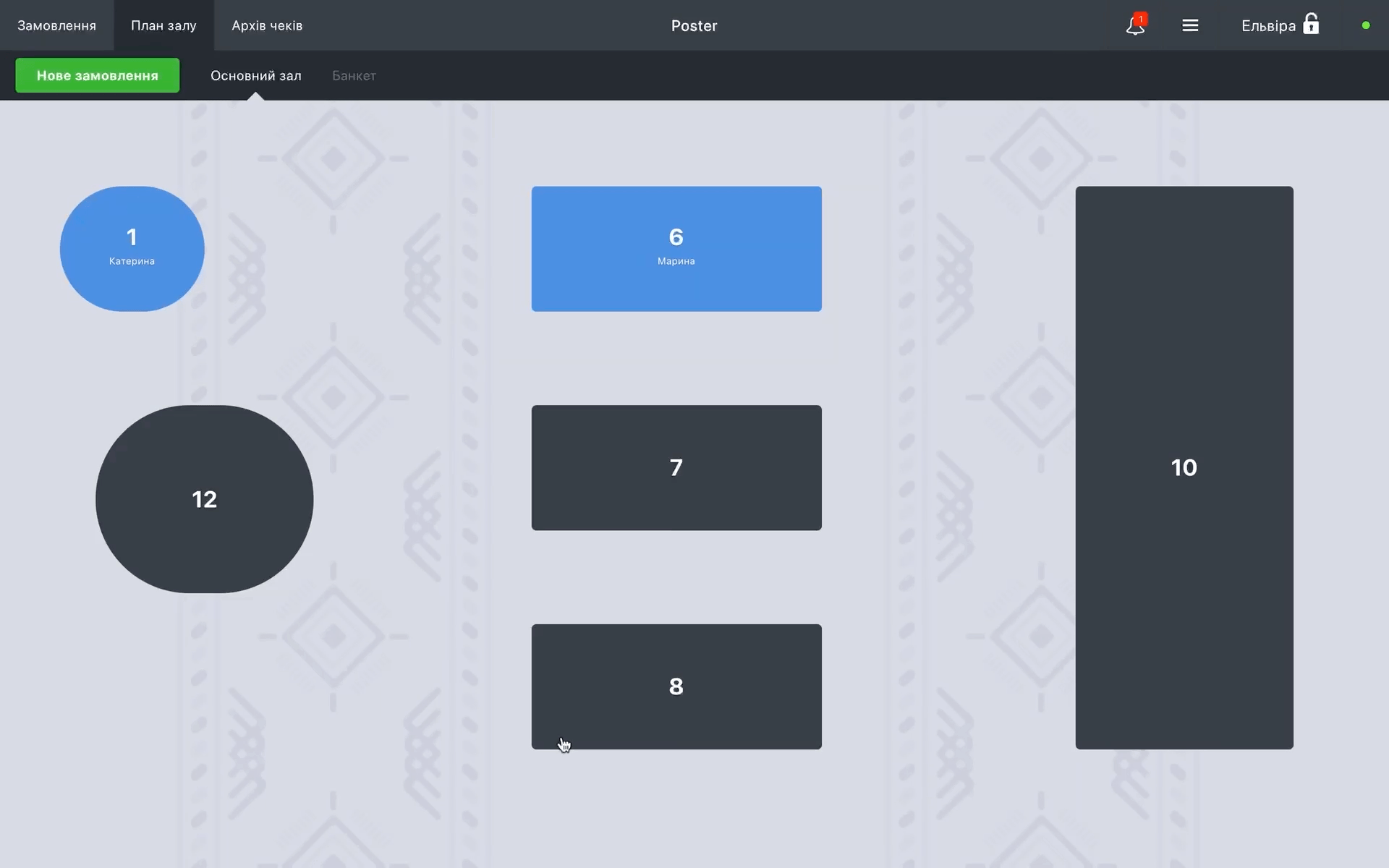 Касир перемикає зверху праворуч на своє ім'я та продовжує працювати.